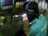 エキゾーストパイプと先程、製作したジョイント部を溶接して一つの製品に組み上げます。エンジンとサイレンサー部を繋ぐ精度がいる重要な部分です。