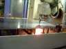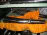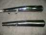 マフラー本体が出来上がり仕上のバフ掛けです。この良否でクロームメッキの出来が決まってしまうので慎重に作業を進めます。右側写真がバフ研磨終了の製品です。