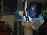 本当はこの前に治具に載せて位置決めして仮溶接をするのですが何分企業秘密の部分なのでご勘弁下さい。仮付が済んだらいよいよ写真の様にセッティングして本溶接を行います。メッキ後の加工工程なので傷が着いたり溶接のスパッターが付着しないように細心の注意を払って作業をします。